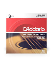 D'addario Acoustic Guitar Strings 3 Pack Set - 13-56 Medium