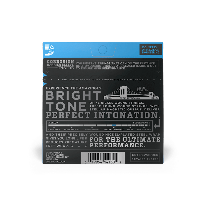 XL Nickel Wound electric guitar strings are the standard against which all other strings are measured. Our best-selling electric set, XL Nickel has been revered by players everywhere since 1974. Made with a high carbon steel core and nickel-plated steel wrap wire, XL Nickel strings have a bright, versatile tone, ideal for a wide variety of musical styles. 09-46 Super Light Top/Regular Bottom gauge sets have more low-end tone, while staying flexible for bends.