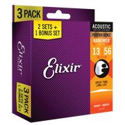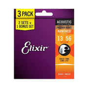 Elixir Nanoweb Phosphor Bronze 3 PACK Acoustic Guitar Strings – Medium 13-56