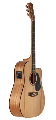 Improved production methods have made it possible to produce these all solid timber guitars more effectively than ever before and the playability and tonal benefits are amazing. The backs and tops of these guitars are able to resonate more freely and have a huge dynamic range. Refined neck/body geometry produces a neck that is a joy to play. Difficult chord shapes and complex single note runs are much easier to execute and increased tonal response improves acoustic projection. A bone nut and saddle ensure maximum tone and sustain.