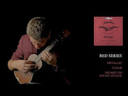 Aquila's Red® strings produce a deeper tone by changing the weight of the material rather than increasing its gauge. By keeping the gauge thinner and more consistent, Red® strings sound brighter and more powerful, and are more responsive across the entire fretboard. This also helps them stay in tune longer than thicker strings. The textured brown/red Red® strings have a very rich tone with a very loud projection.