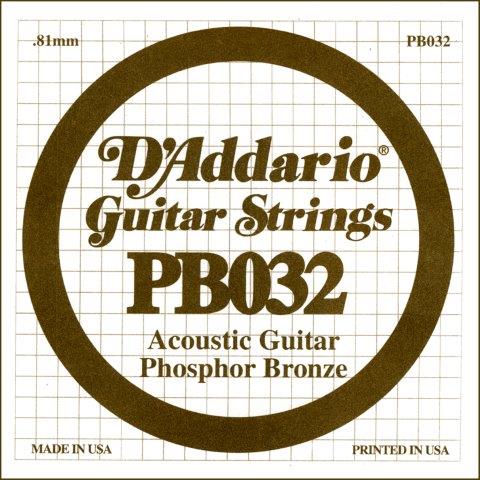 D'AddarioPB030 is a .032 gauge phosphor bronze wound acoustic guitar string. Perfect as a replacement string or for creating custom sets. Part of the best ...